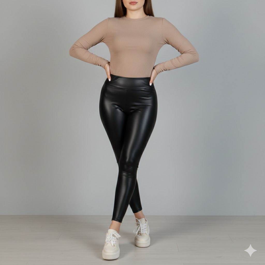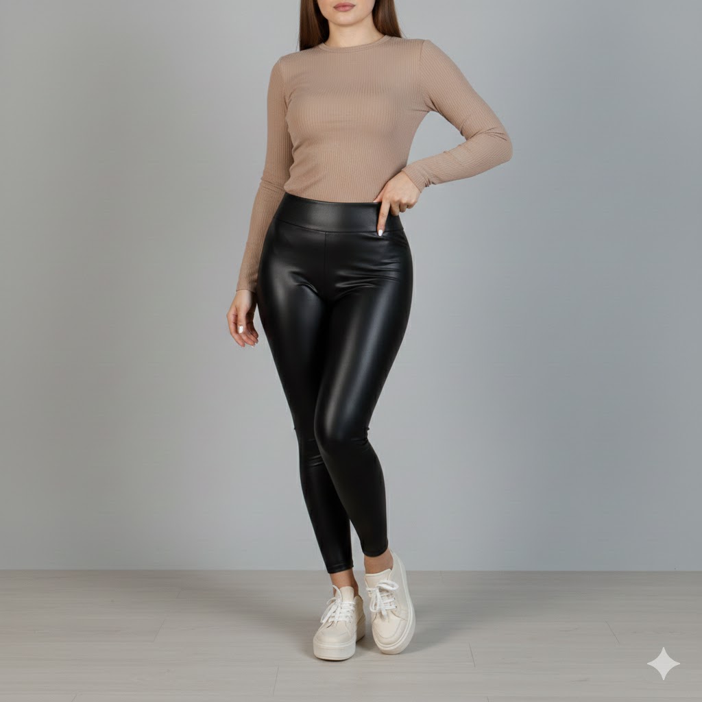 این لگ چرم مشکی با طراحی ساده و شیک، انتخابی کاربردی برای استایلهای روزمره و نیمهمجلسی است.